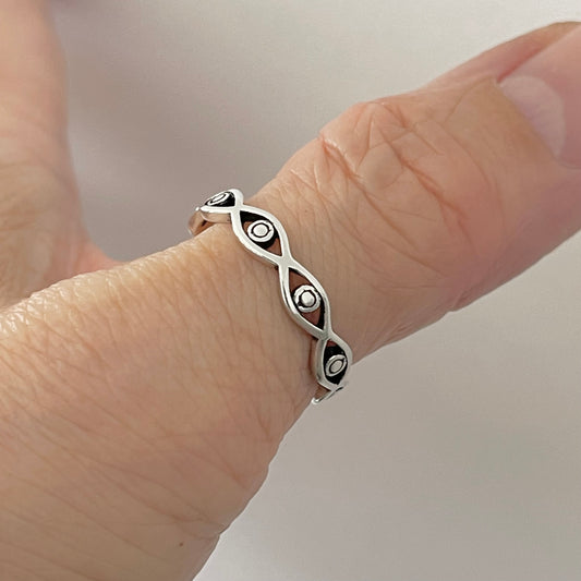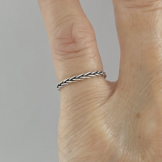 925 Sterling Silver Braided Eternity Band – Dainty Rope Ring, Stackable Boho Silver Ring for Women
