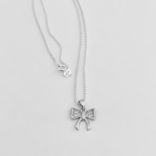 925 Sterling Silver CZ Bow Necklace – Dainty Bow Tie Pendant, Minimalist Silver Chain Jewelry for Women