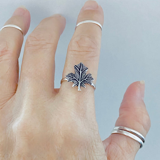 925 Sterling Silver Delicate Maple Leaf Ring | Canadian Tree & Nature Jewelry