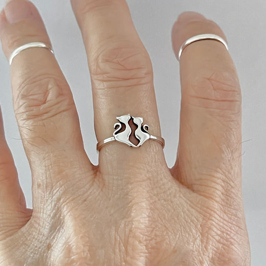 925 Sterling Silver Cat and Kitten Ring – Dainty Animal Silver Ring, Kitty Ring for Women