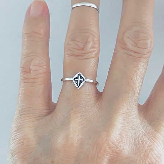 925 Sterling Silver Diamond Shape with Little Cross Ring | Minimalist Religious Silver Jewelry