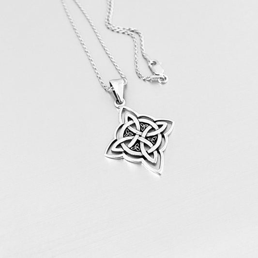 925 Sterling Silver Celtic Cross Necklace with Triquetras| Statement Trinity Knot Pendant