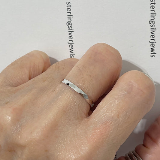 925 Sterling Silver Diamond Cut 2mm Band Ring – Dainty Stackable Wedding Silver Ring for Women & Men